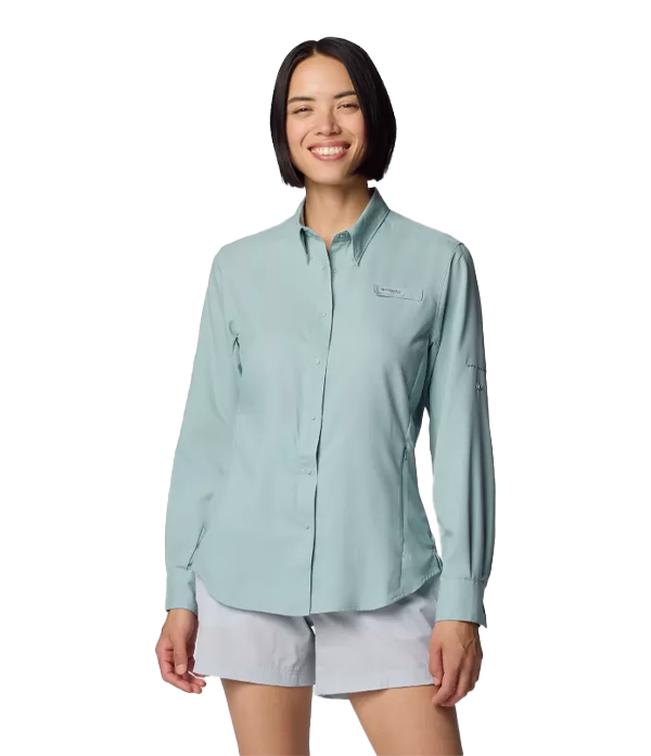 - HANDY FEATURES: This women’s Columbia PFG Tamiami long sleeve fishing shirt features two handy chest pockets for convenient storing and roll-up sleeves for adjustable comfort.